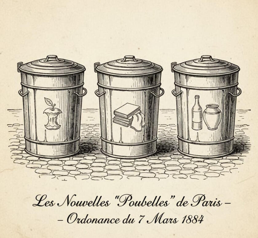 The Paris Crisis & The Birth of the "Poubelle"In 1884, Paris was a city of light drowning in refuse. On March 7, the Prefect of the Seine, Eugène Poubelle, signed a revolutionary decree mandating that every building provide three specific containers: one for organics, one for paper/cloth, and one for glass.The move faced fierce pushback from landlords, and the Parisian press began mockingly calling the bins "Poubelles" to ridicule the man behind the mandate. However, the system worked so efficiently that the name transformed from a satirical insult into the global French word for "trash can." Eugène didn't just invent a box; he invented a behavior that defined modern hygiene.