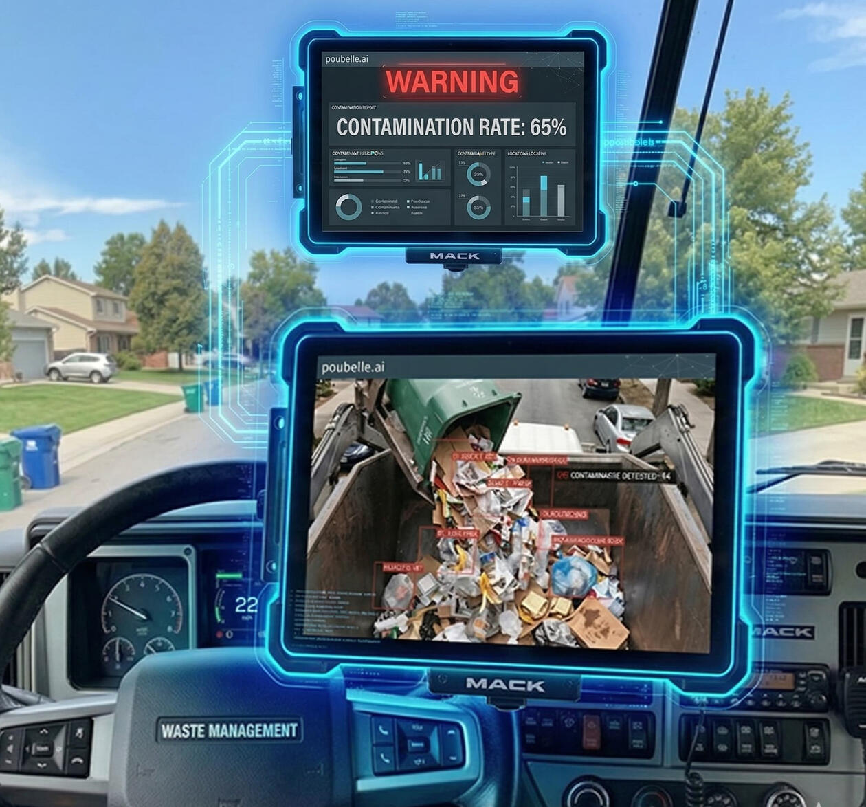 Audit from the Cabin: Stop the manual "lid-flip" audits! Triggered either by a driver request or randomly by the system, the AI scans the bin's contents, identifies contaminants, and generates a report.