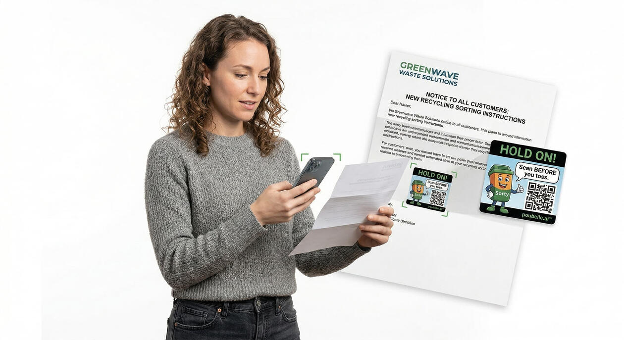 Dress up your bins with a fun, custom-logo sticker! The QR code gives residents free access to POUBELLE.AI digital sorting app to make recycling and composting easy.