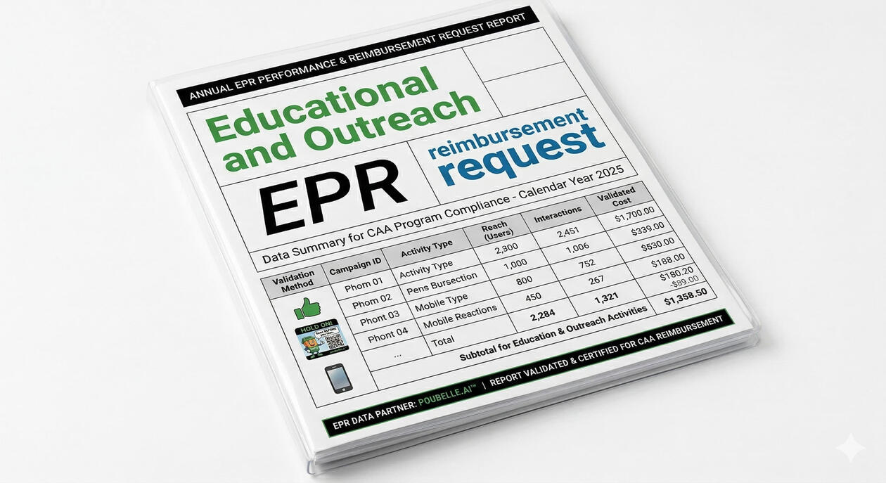 Turn outreach expenses into Return On Investment (ROI). Use tailored, data-backed annual reports to prove your waste diversion impact and justify reimbursements from your Producer Responsibility Operator (PRO).